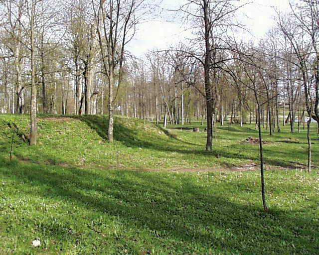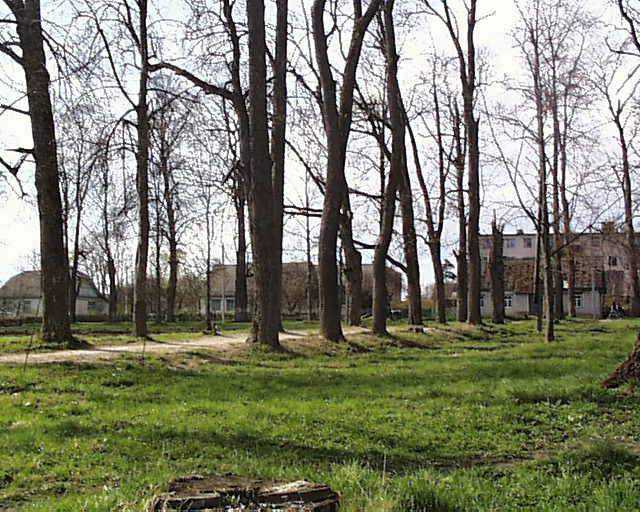 Сядзібны парк, па меркаванні А.Т. Федарука, першапачаткова фарміраваўся ў рэгулярным стылі на паўднёвым схіле. У канцы ХІХ ст. ён відазмяніўся, асабліва на ніжняй тэрасе (мажліва, звязана з будаўніцтвам сядзібных будынкаў), прыняў пейзажныя рысы, аднак, як заўважае даследчык, выразнага планіровачнага рашэння не атрымаў. Цэнтрам кампазіцыі верхняй тэрасы з'яўлялася вялікае аранжарэя ў акружэнні саду (зараз на яе месцы будынак вучылішча). У заходняй частцы аранжарэі размяшчалася група вяза шаршавага, у паўднёвай летам выстаўляліся субтрапічныя і трапічныя расліны. Асобна стаялі вялікія дрэвы ліпы драбналістай (не захаваліся). Уздоўж грэбня тэрасы ішоў рад ліпы з фармаванымі кронамі.