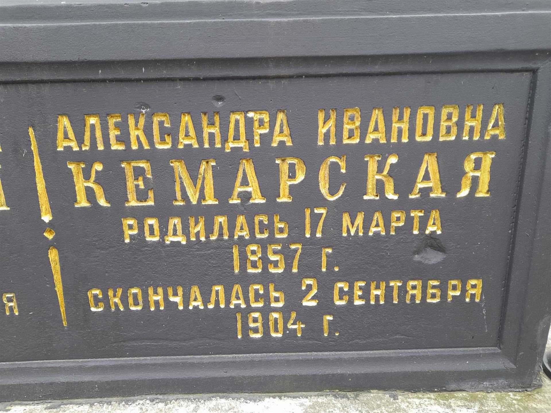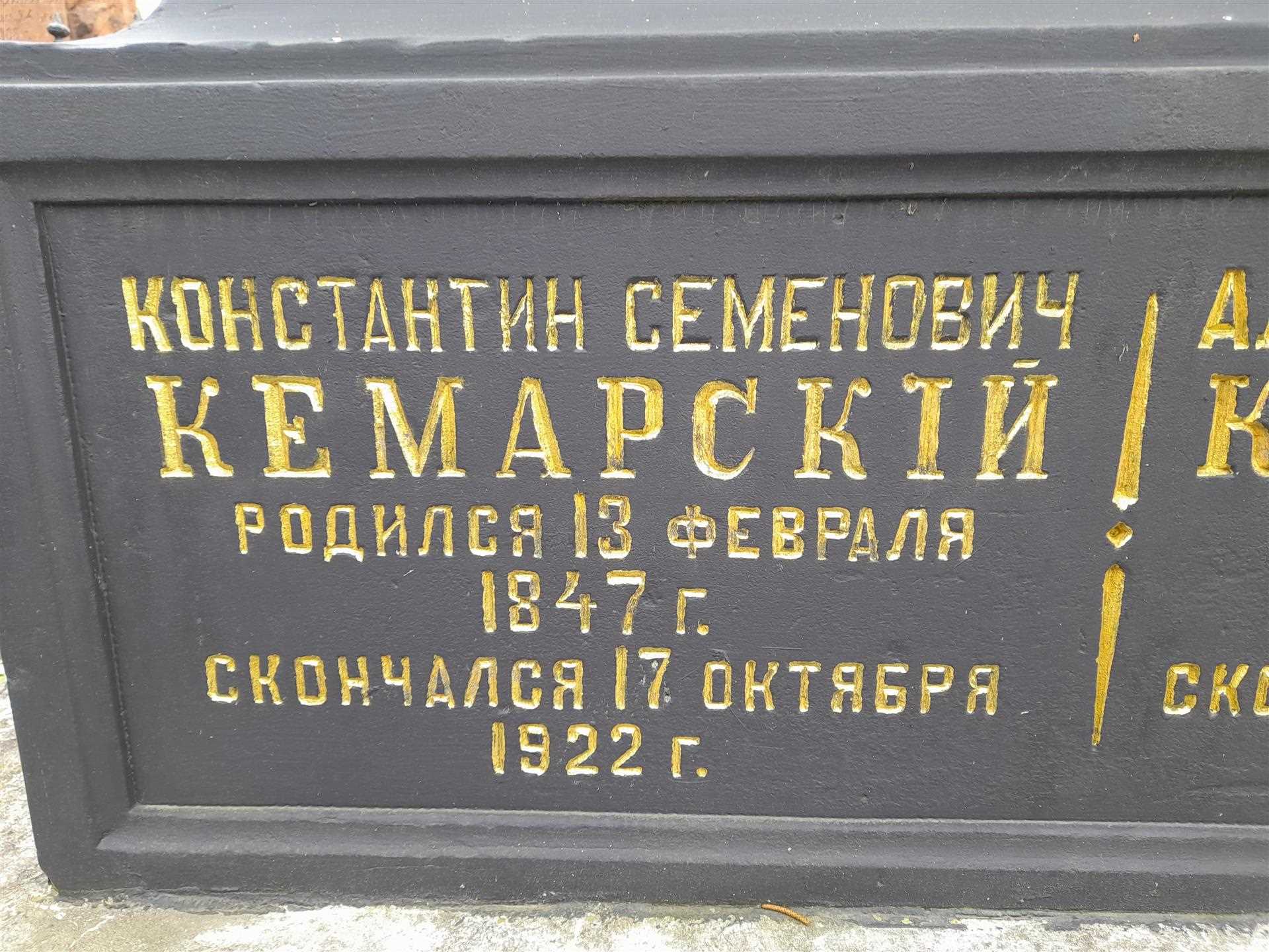 Пра жонку Аляксандру Іванаўну Кемарскую (1857 - 1904) вядома, што яна з’яўлялася сябрам Гродзенскага праваслаўнага Сафійскага брацтва. Па некаторых крыніцах, на могілках пахавана сястра К.С. Кемарскага - Кемарская Марыя Сямёнаўна (1839 - 1898).