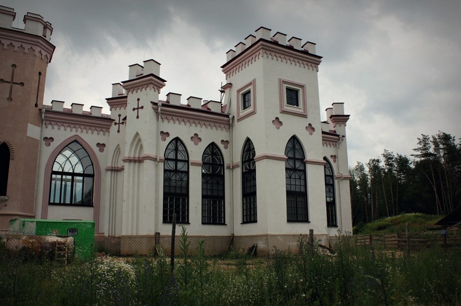 Палац Пуслоўскіх (Косаўскі замак) - унікальны архітэктурны помнік сярэдзіны ХІХ ст. пабудаваны па ініцыятыве Вандаліна Пуслоўскага - багатага прамысловага магната, які валодаў спіртзаводам, шклозаводам, цагляным заводам і суконнымі мануфактурамі. Будаўніцтва палаца прыпадае на 1838 г.