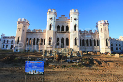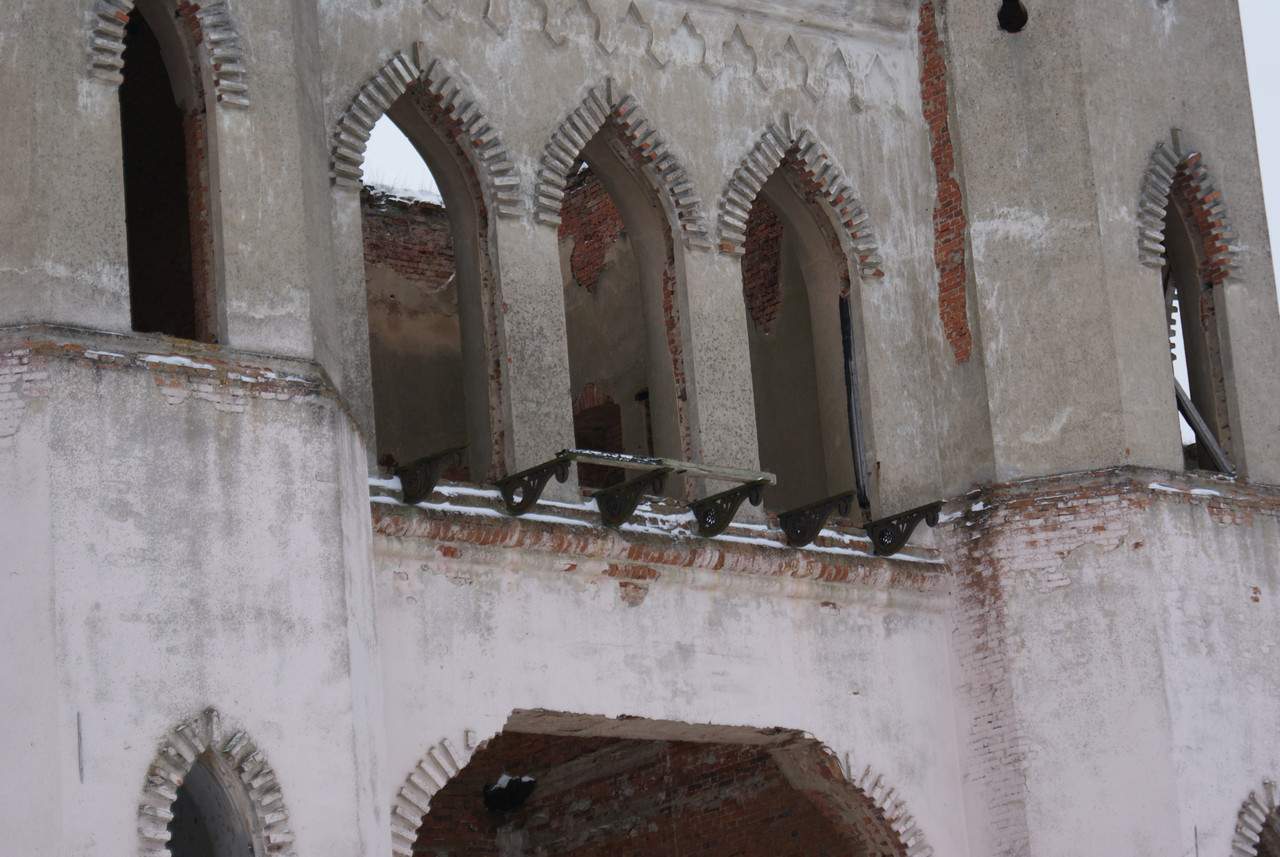 Палац пабудаваны ў стылі неаготыкі: мае 12 зубчастых вежаў, кожная з якіх сімвалізуе месяц года, 365 маленькіх вежаў, што адпавядае дням года, стральчатыя вокны і байніцы. Замак быў абнесены амаль 3-метровай каменнай сцяной, а ўваход ажыццяўляўся праз адну з брам, якіх было чатыры. Акрамя гэтага вакол замка быў закладзены парк у некалькі дзясяткаў гектараў. Палац сіметрычны, мае два крыла: у адным з іх размяшчалася мастацкая галерэя і бібліятэка, у другім крыле размяшчаліся спальныя пакоі.