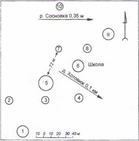 Магілёўская вобласць, Клімавіцкі раён, в. Хатовіж, на паўночна-заходняй ускраіне вёскі, на левым беразе р. Сасноўка, каля школы, ва ўрочышчы Курганне