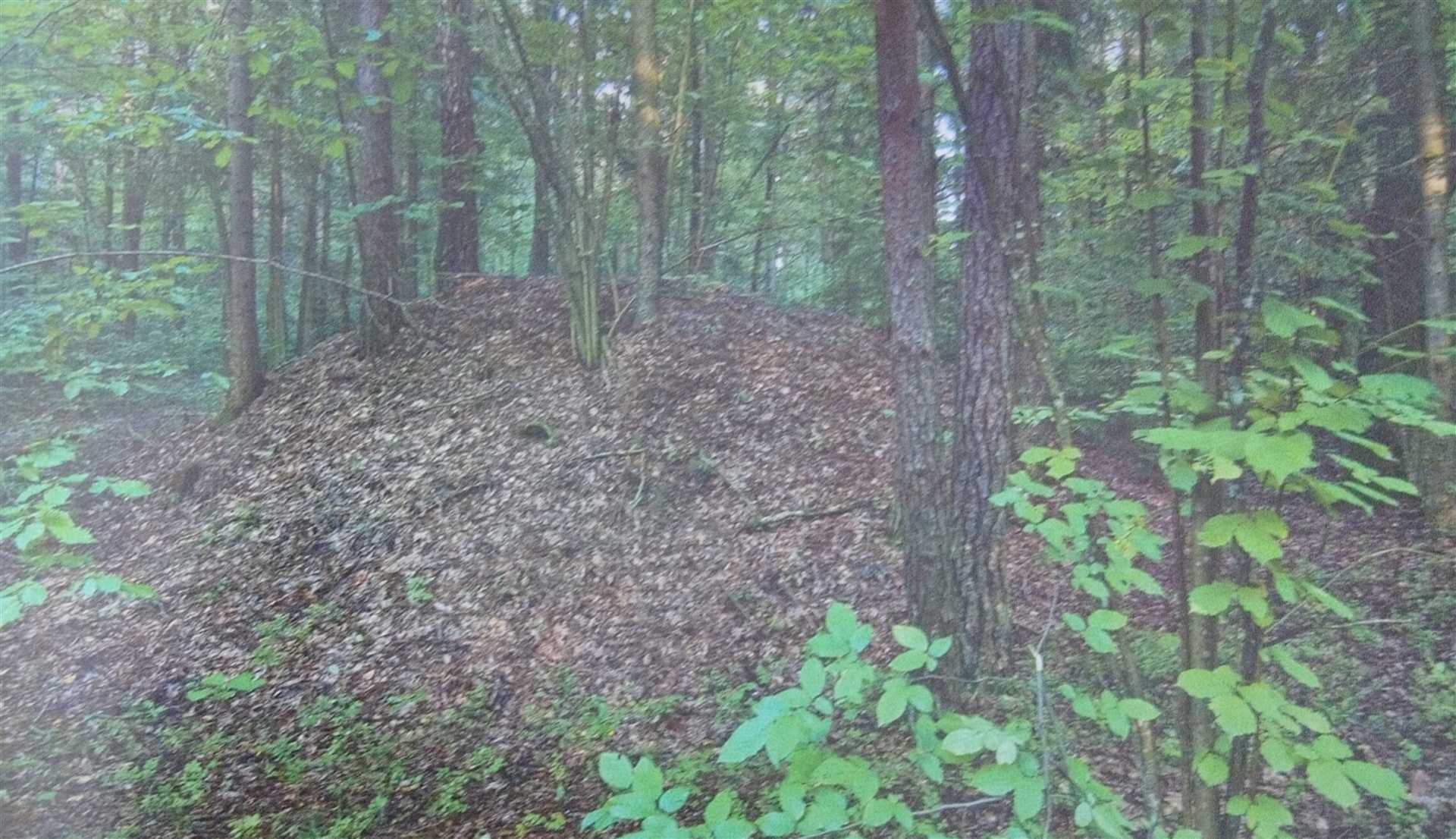 Курганны могільнік ранняга сярэднявечча (ІХ-ХІІІ стст.) размешчаны за 2 км на захад ад в. Навасёлкі, злева ад лясной дарогі, якая перасякае вузкалейку (па баках дарогі на в. Залужжа). Усяго курганны комплекс уключае тры паўсферычныя, задзернаваныя курганы вышынёй 1,2-1,5 м.