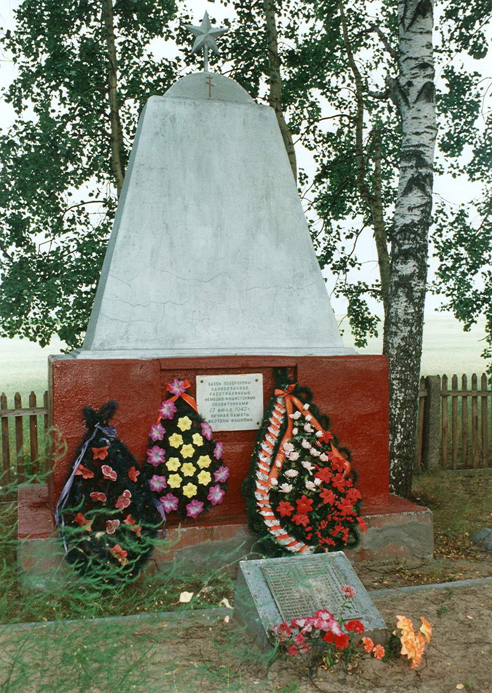 У 1963 г. на яе паўночнай ускраіне ў памяць аб крывавых падзеях, якія адбыліся 17–20 ліпеня 1942 г. быў пастаўлены бетонны абеліск. На мармуровай пліце былі высечаны 45 імёнаў бязвінна загінуўшых мясцовых жыхароў – ахвяр фашызму. Перад помнікам размешчана вялікая кветніца. Помнік абнесены агароджай.