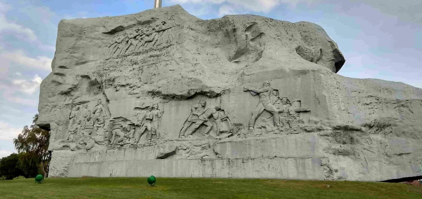 На тыльным баку Галоўнага манумента рэльефныя кампазіцыі найбольш характэрных эпізодаў абароны: контратака, нарада ў адным з казематаў, жанчыны і дзеці, подзвіг артылерыстаў, апошняя граната, кулямётчыкі.