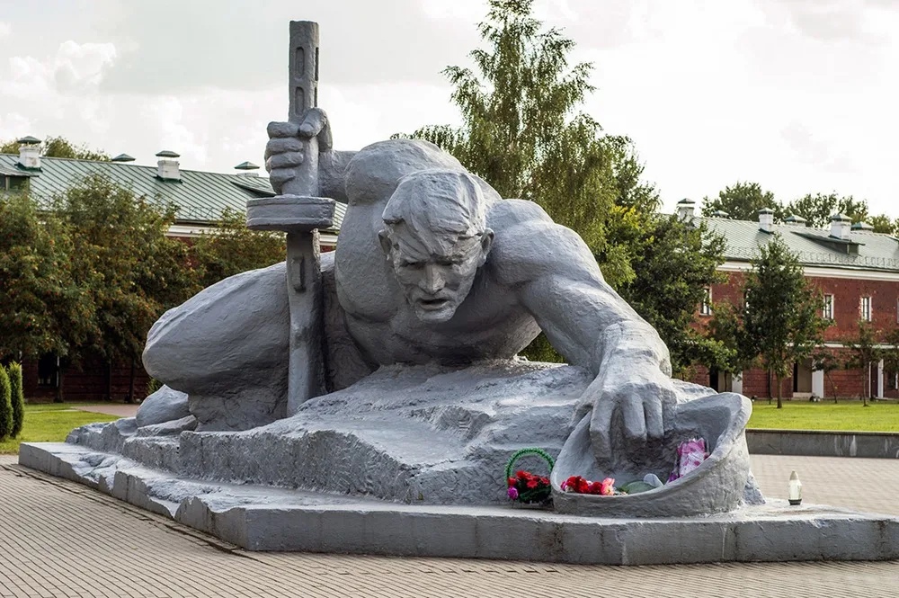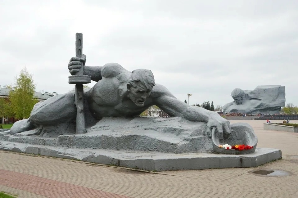 Абапіраючыся на аўтамат, салдат з каскай у руцэ паўзе да вады. Гэта мастацкі вобраз, які сімвалізуе смагу абаронцаў Цытадэлі.