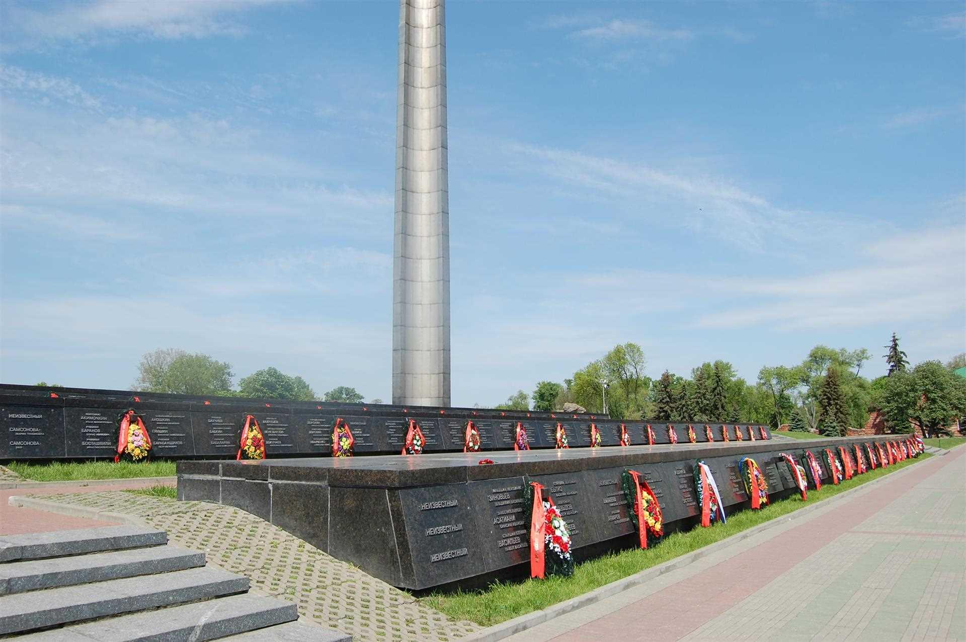 Трох'ярусныя пахаванні прамавугольныя ў плане прадстаўляюць сабой тры доўгія рады пабудаваныя з чорнага лабрадарыту на бетонным падмурку. Трыма ўступамі яны адыходзяць ад плошчы каля Вечнага агню, у правы бок ад лесвіцы. Унутры ў склепах знаходзяцца ўрны з астанкамі загінуўшых у час абароны крэпасці ў чэрвені-ліпені 1941 г. На крыху нахіленых плітах надпісы з сілуміна - званне, прозвішча, імя, імя па бацьку, байцоў, камандзіраў Чырвонай арміі, жанчын, дзяцей, па 3 на кожнай пліце.