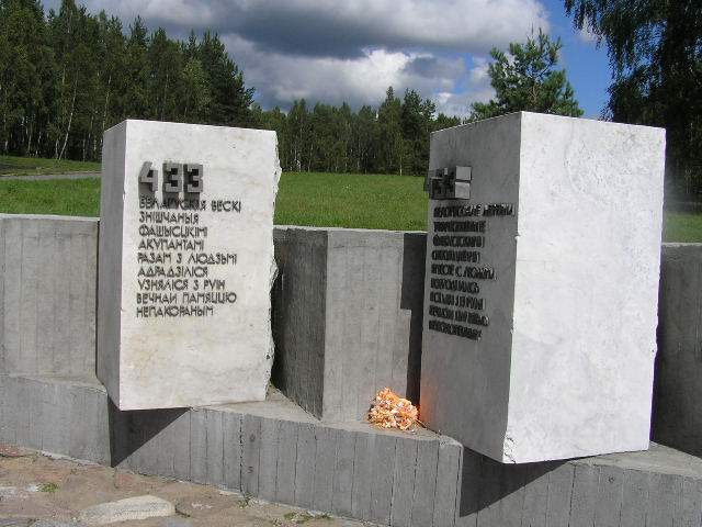 22 сакавіка 1943 г. у вёску ўварваўся карны батальён. Карнікі сагналі ў гумно старых, жанчын, дзяцей, зачынілі і падпалілі будынак. У агні загінулі 149 жыхароў, у тым ліку 75 дзяцей да 16 гадоў, спалена ўся вёска 26 двароў. У студзені 1966 г. ЦК КПБ прыняў рашэнне аб стварэнні мемарыяльнага комплексу "Хатынь" у памяць сотняў беларускіх вёсак, знішчаных за гады Вялікай Айчынай вайны (у перыяд акупацыі 1941-1944 гг.) Аўтары мамарыяла "Хатынь" - беларускія архітэктары: Ю.М. Градаў, В.П. Занковіч, Л. М. Левін, скульптар С.І. Селіханаў распрацавалі праект коплексу. Мемарыяльны комплекс Хатынь - выразны сімвал народнай памяці.