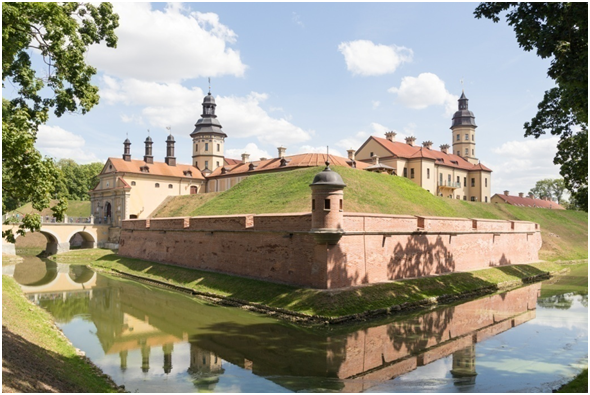 Нясвіжскі замак-палац з абарончымі збудаваннямі, частка палацава-паркавага ансамбля – адзіны бастыённы замак, які захаваўся ў Беларусі. Для гісторыі архітэктуры і горадабудаўніцтва палацава-паркавы комплекс уяўляе сабой выключны выпадак – на працягу 400 гадоў культурны ландшафт, планіроўка, архітэктурныя збудаванні не зазналі істотных змен. Гэта адзін з чатырох аб’ектаў на тэрыторыі нашай краіны, якія ўнесены ў Спіс сусветнай спадчыны ЮНЕСКА.