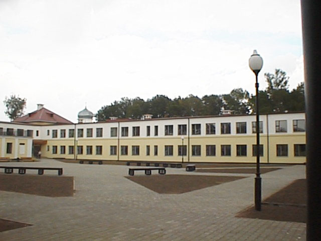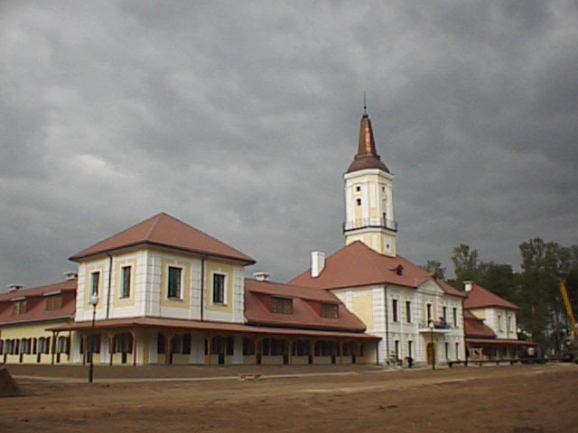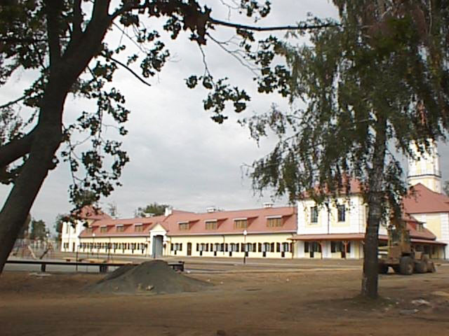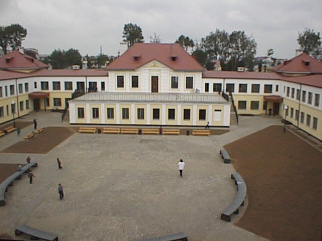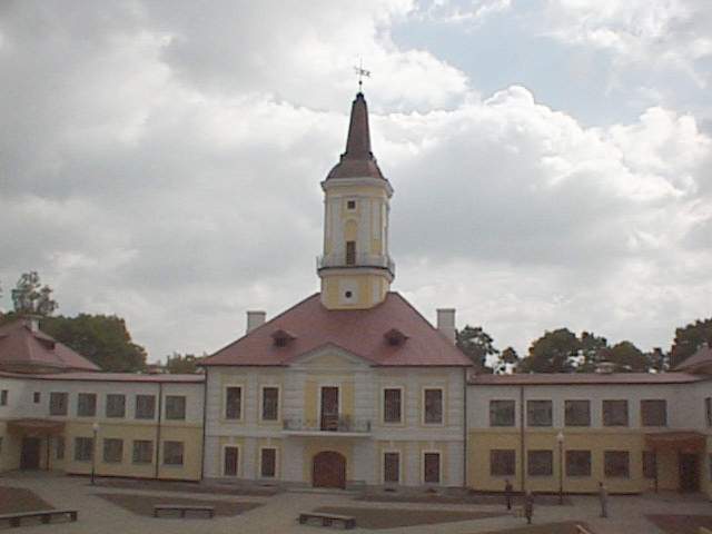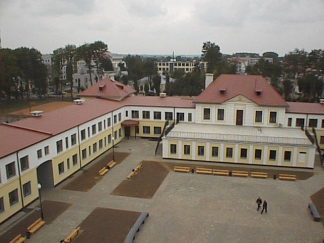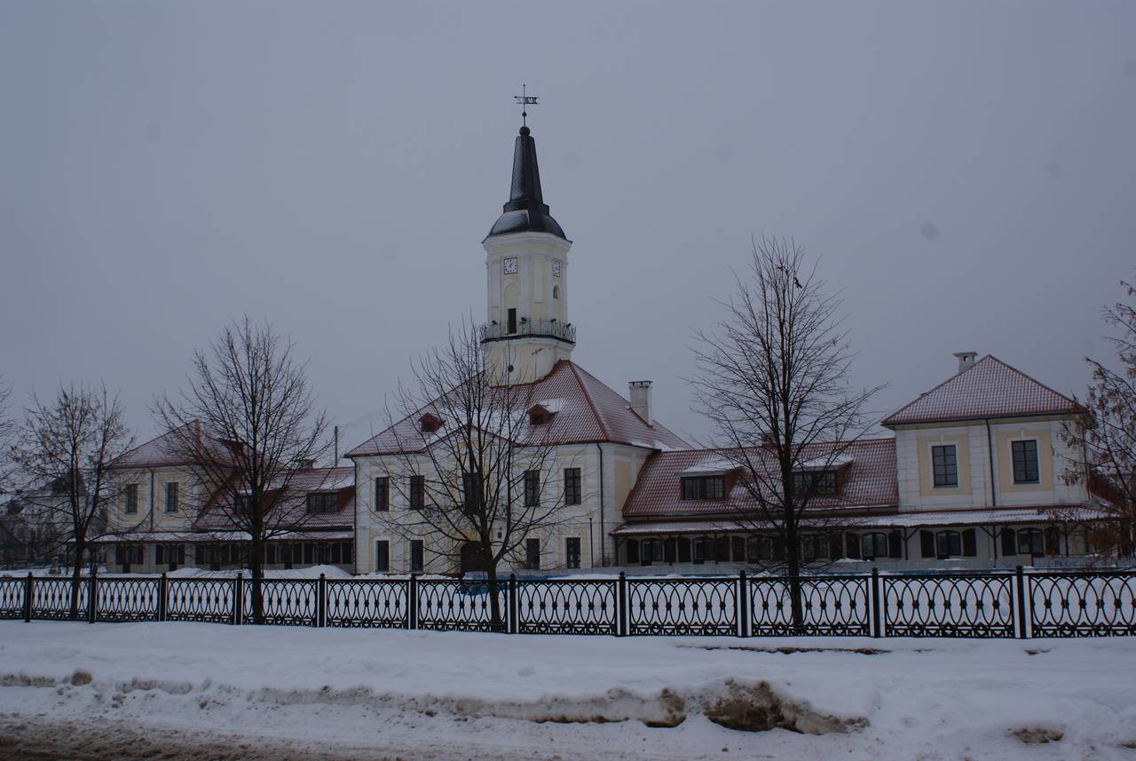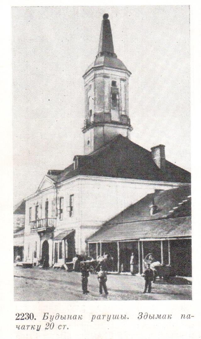 Будынак ратушы (захаваўся) быў злучаны з аднапавярховымі гандлёвымі радамі (не захаваліся), што стварала замкнутую кампазіцыю з вялікім унутраным дваром.