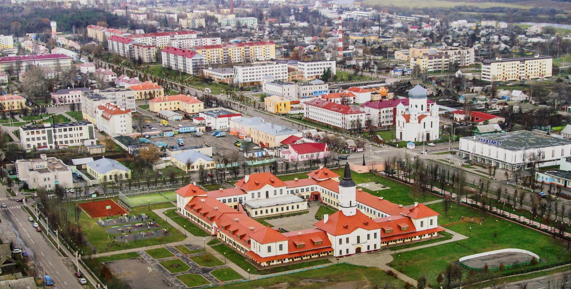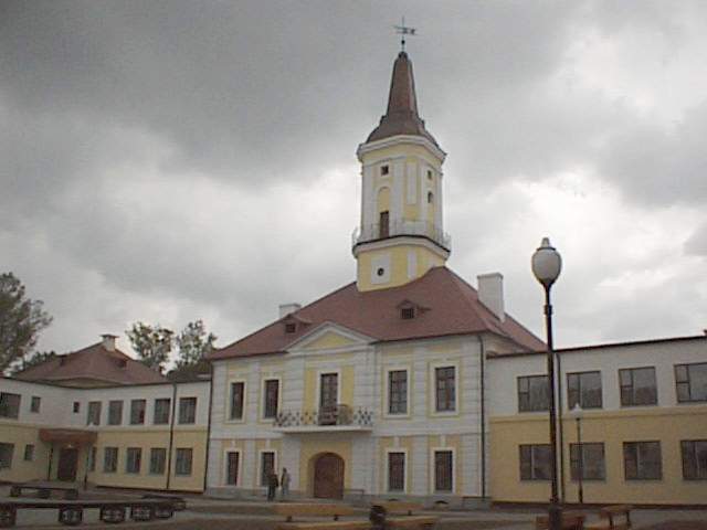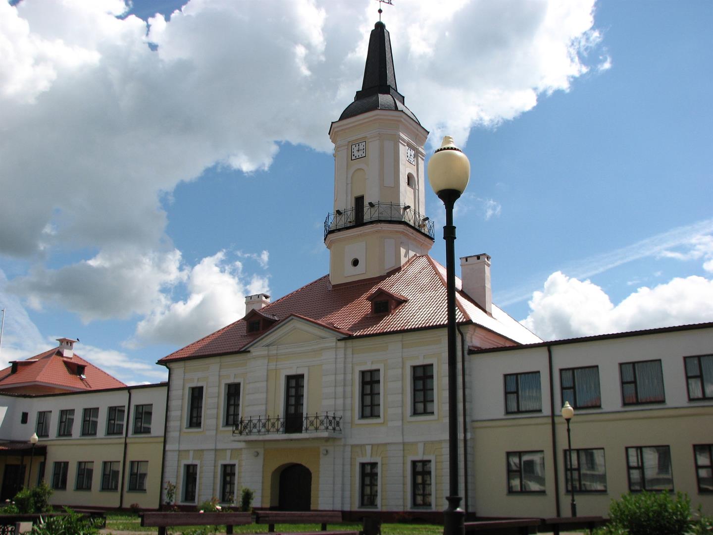 Ратуша знаходзіцца ў цэнтры горада, у скверы, на скрыжаванні вуліц на ўсходзе Савецкая, на поўдні Дняпроўская, на поўначы Паштовая, на захадзе Ленінская. Пабудавана ратуша з цэглы ў 18 стагоддзі, ў стылі класіцызма.