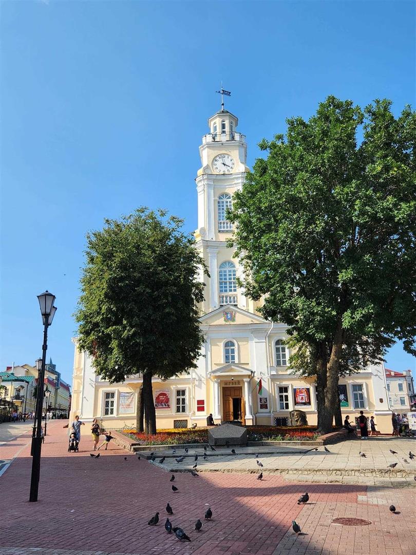 Ратуша з'яўляецца ўнікальным помнікам грамадзянскага будаўнцтва Беларусі канца XVIII ст. У архітэктуры будынка спалучаюцца рысы барока і класіцызму. У 1775 г. было завершана будаўніцтва мураванай ратушы. Гэта прамавугольны ў плане будынак, увенчаны высокай вежай, дзе ўстаноўлены гадзіннік і знаходзіцца глядзельная пляцоўка. Ратуша з'явілася кампазіцыйным цэнтрам Рынкавай плошчы і падзяліла яе на дзве часткі: адна раскрывалася перад галоўным фасадам ратушы да Віцьбы, другая знаходзілася за ратушай на поўнач.