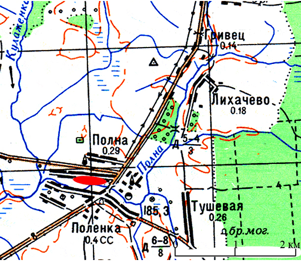Магілёўская вобласць, Горацкі раён, в. Пална, на правым беразе р. Пална, на агародах вёскі