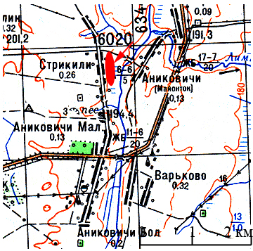 Магілёўская вобласць, Горацкі раён, в. Стрыкілі, на левым беразе р. Камароўка, на агародах вёскі
