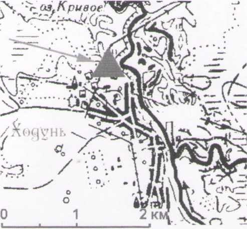 Магілёўская вобласць, Клімавіцкі раён, в. Хадунь, на паўночнай ускраіне вёскі, на лукавіне левага берага р. Асцёр