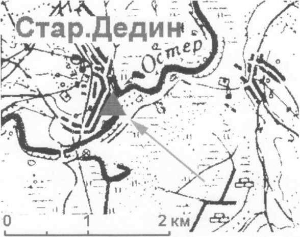 Стаянка-1 знаходзіцца на ўсход ад в. Стары Дзедзін, на правым беразе р. Асцёр. Адкрыла помнік у 1980 г. А.Г. Калечыц, абследаваў у 2006 г. А.У. Коласаў.