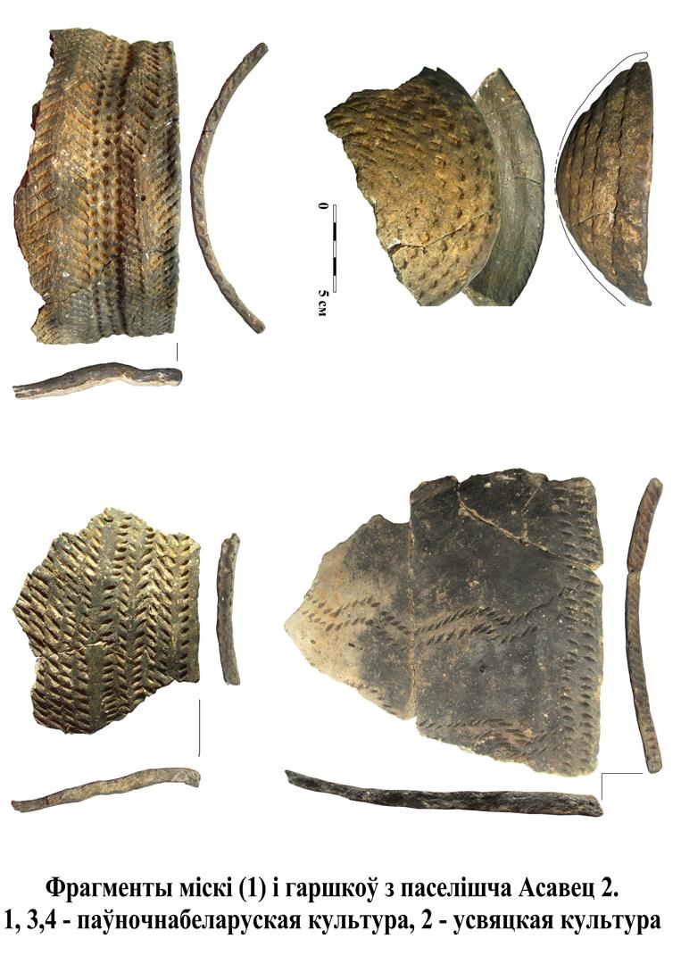 Пры раскопках выяўлена шмат драўнінных рэшткаў, што засталіся ад жыллёвых і гаспадарчых збудаванняў і ўвогуле ад гаспадарчай чалавечай дзейнасці, вырабы з каменя, костак, рагоў, дрэва, шматлікая кераміка, упрыгожанні, адыходы штодзённасці - косткі, луска рыб, шалупінне дзікарослых пладоў, ракавіна малюскаў, рознае смецце.