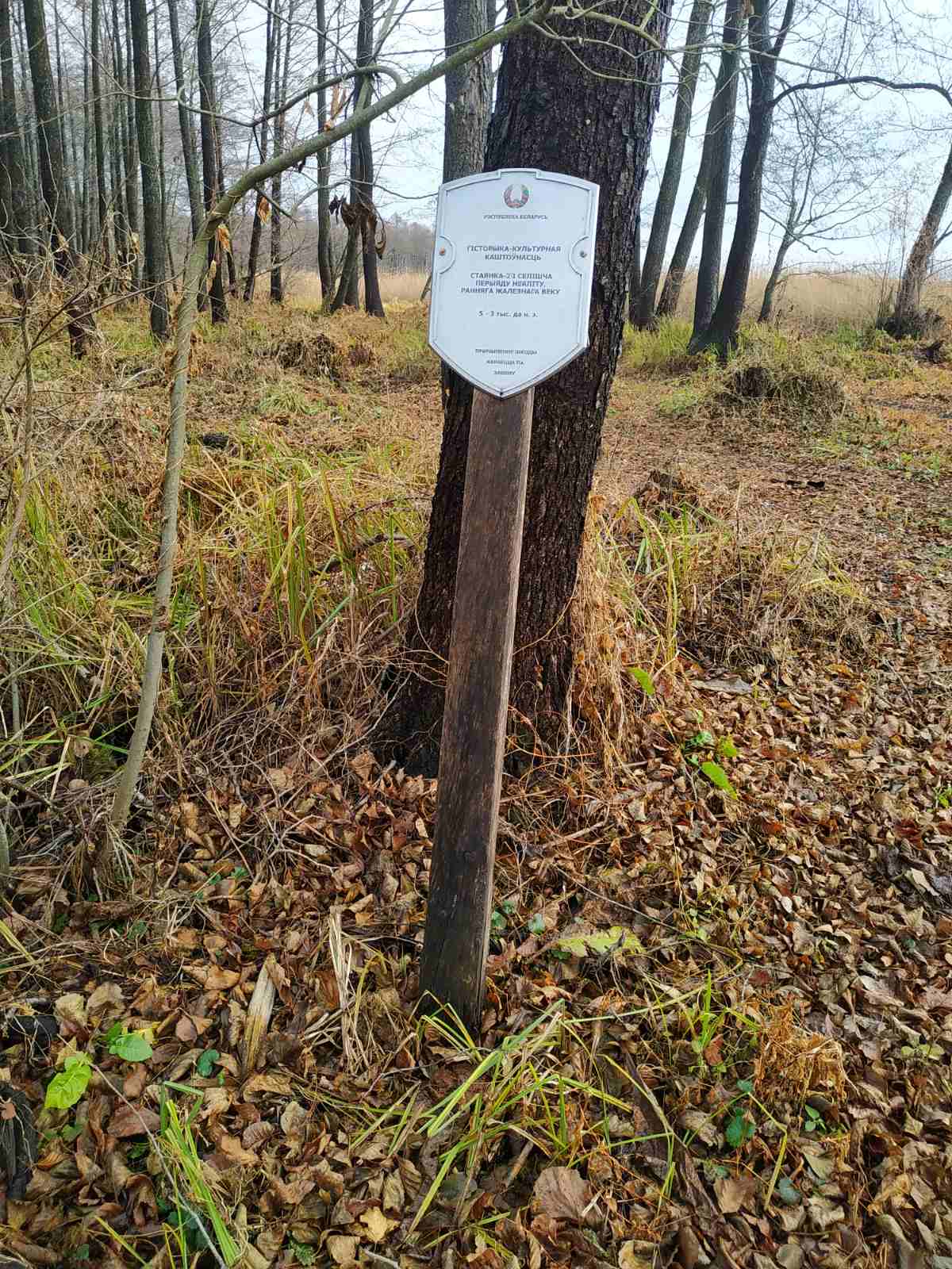 Брэсцкая вобласць, Пінскі раён, в. Востраў, в. Востраў, 1 км на паўднёвы ўсход, на пясчаным узгорку левага берага р. Стыр
