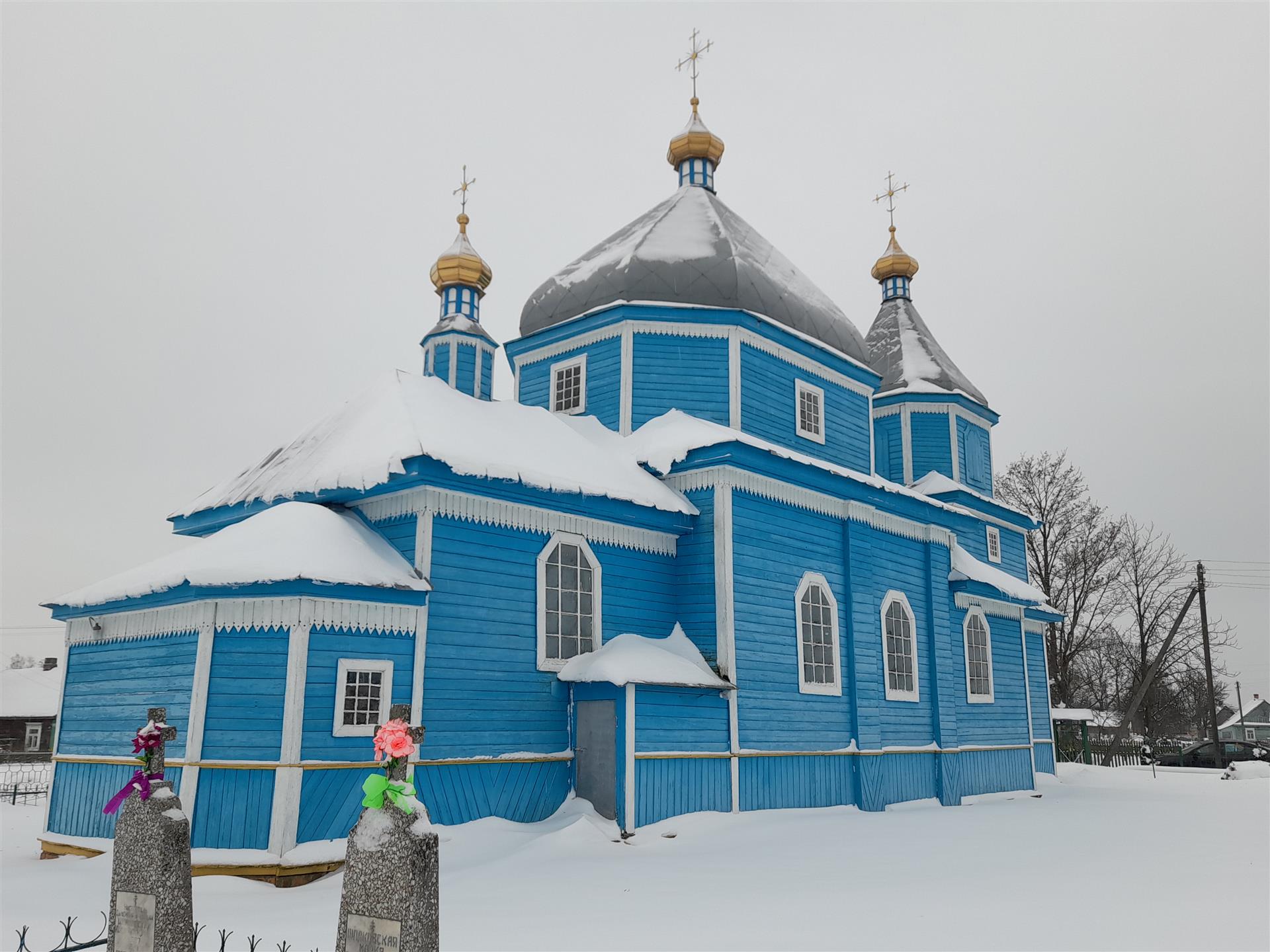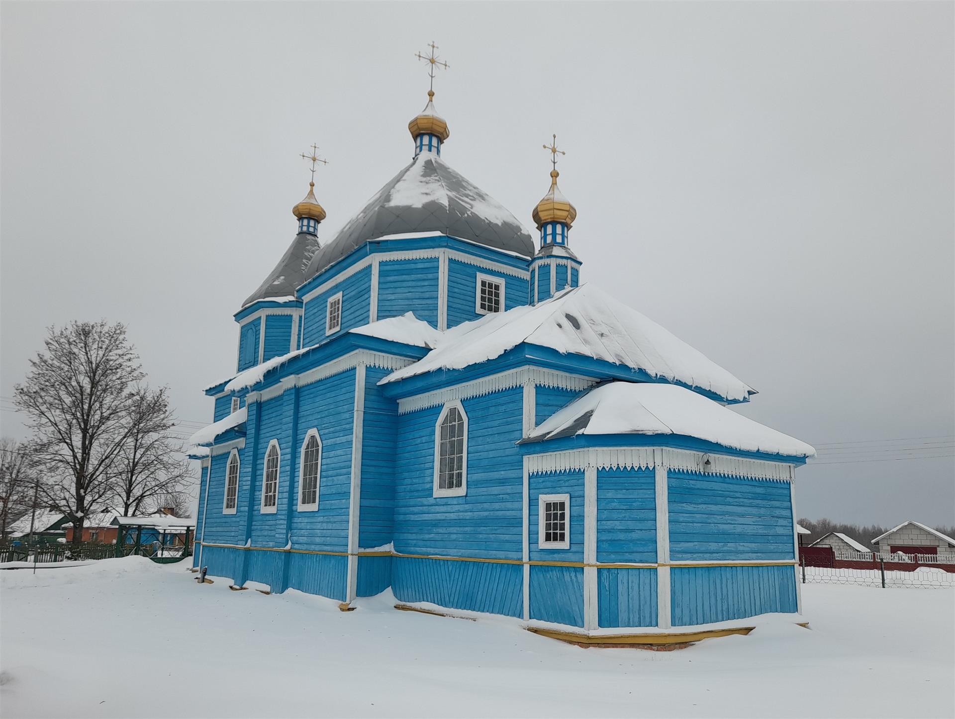 Царква трохзрубная, па прадольнай восі размешчаны прамавугольныя ў плане бабінец, цэнтральны і алтарны зрубы. Да бабінцу з заходняга боку прырубленыя трох’ярусная званіца, да алтарнага зрубу з усходняга боку прыбудаваны нізкі аб’ём рызніцы. Аконныя праёмы прамавугольныя са зрэзанымі верхнімі вушламі. Цэнтральны аб’ём завершаны масіўным чацьверыкаванным барабанам са зрэзанымі вугламі.