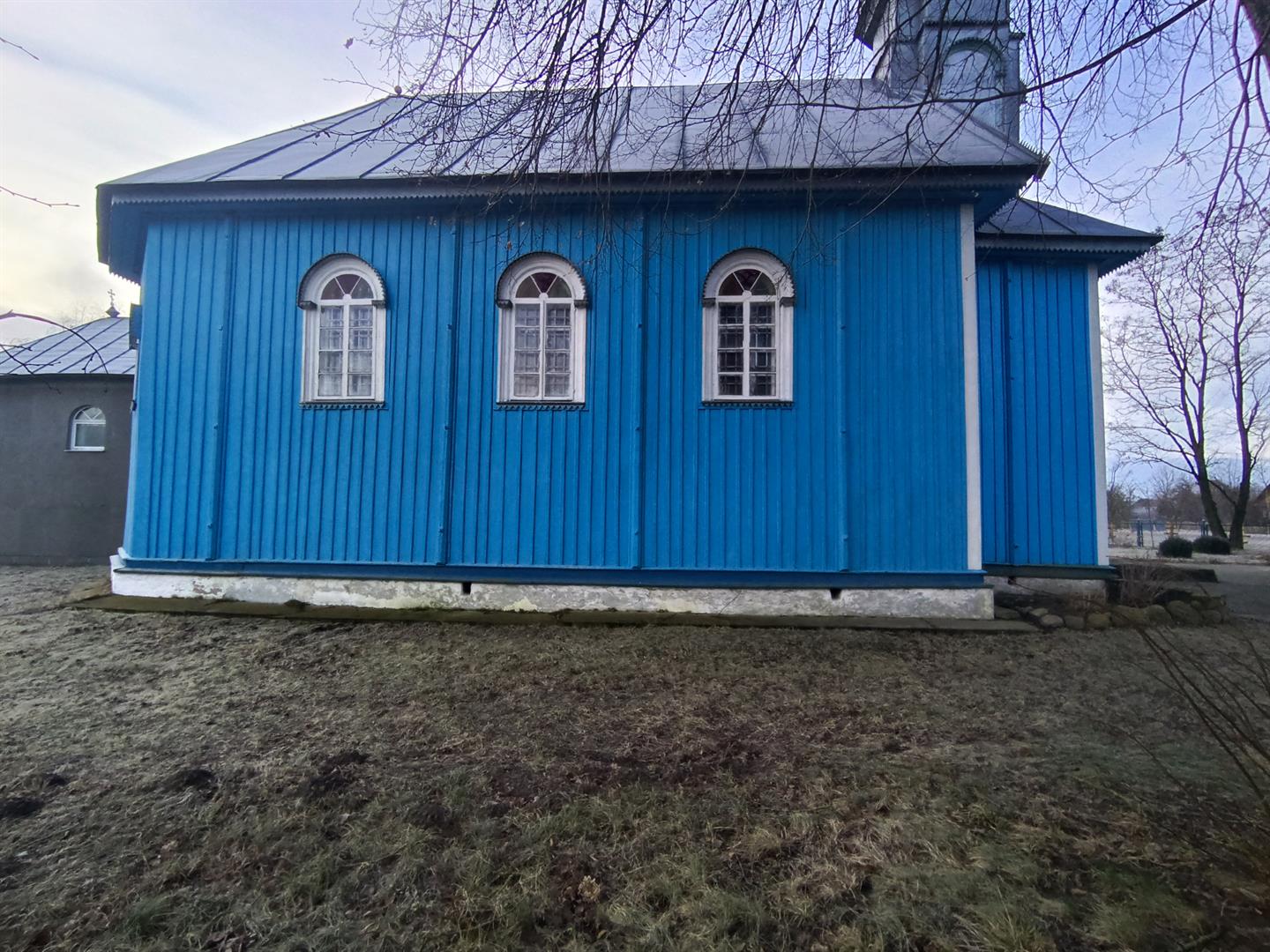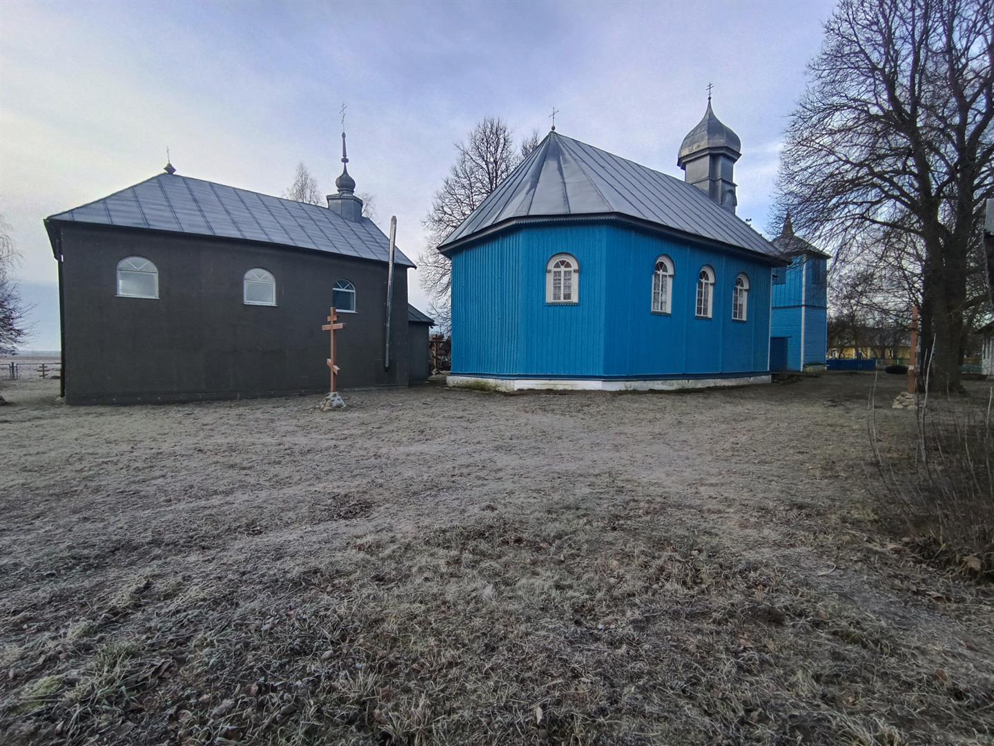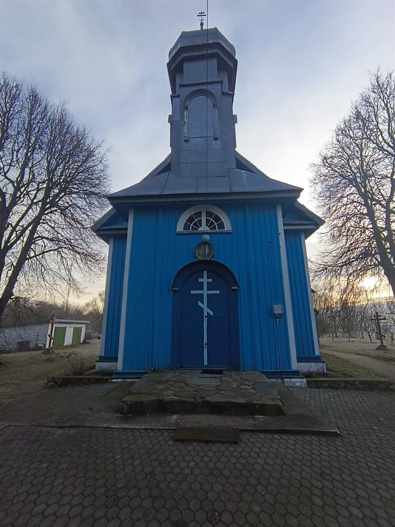 Сама царква ўяўляе сабой прамавугольны ў плане асноўны аб'ём з трохграннай алтарнай часткай і бабінец з двух'яруснай званіцай (васьмярык на васьмярыку), завершанай цыбулепадобнай галоўкай. Мастацка-дэкаратыўны акцэнт інтэр'ера -- драўляны іканастас. Уваход на агароджаны ўчастак царквы ажыццяўляецца праз драўляную двух'ярусную надваротную званіцу, якая размешчана аўтаномна па падоўжнай восі царквы. Канструкцыя званіцы каркасная. Агульныя дэталі дэкору (паўцыркульныя праёмы, шалёўка сцен) аб'ядноўваюць яе з царквой ў адзін архітэктурны ансамбль.