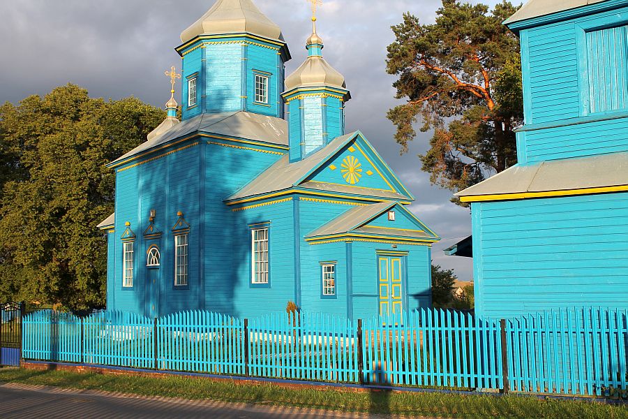 Побач з царквой размешчана двух’ярусная каркасная званіца.