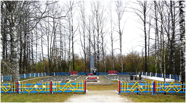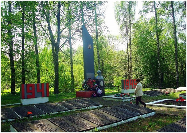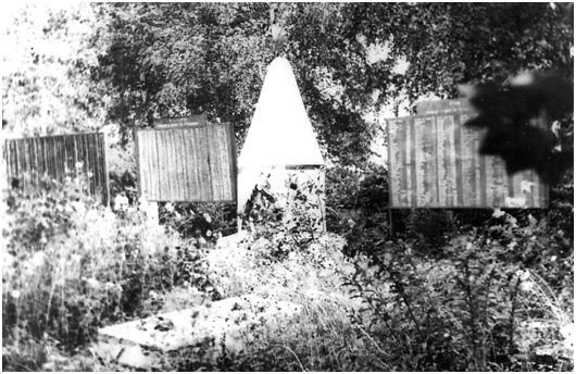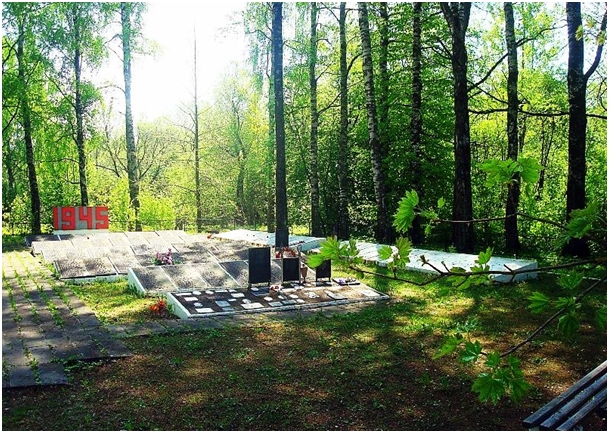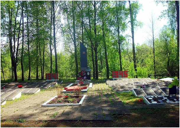 У 1952 г. на месцы пахавання знаходзіўся абеліск Героя Савецкага Саюза Б. Г. Малышаву вышынёй 3,5 м, злева i справа ад абеліска - металічныя мемарыяльныя дошкі з прозвішчамі пахаваных воінаў. На могілках на той час было пахавана 2600 чалавек.