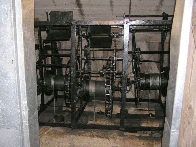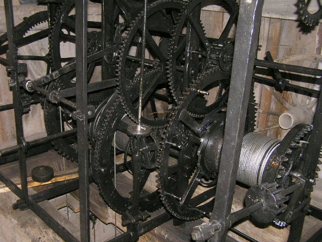 Гадзіннік размешчаны на 3-м ярусе вежы, на вышыні каля 30 м. Апорны каркас механізма з памерамі 180х112х130 см уяўляе сабой жосткую жалезную раму з характэрнымі "шышкамі" на вертыкальных стойках па чатырох вуглах. Апорны каркас, усе колы і шэсцярні ходавага і боевага механізмаў - кавальскай работы.
