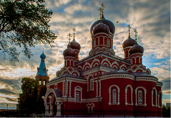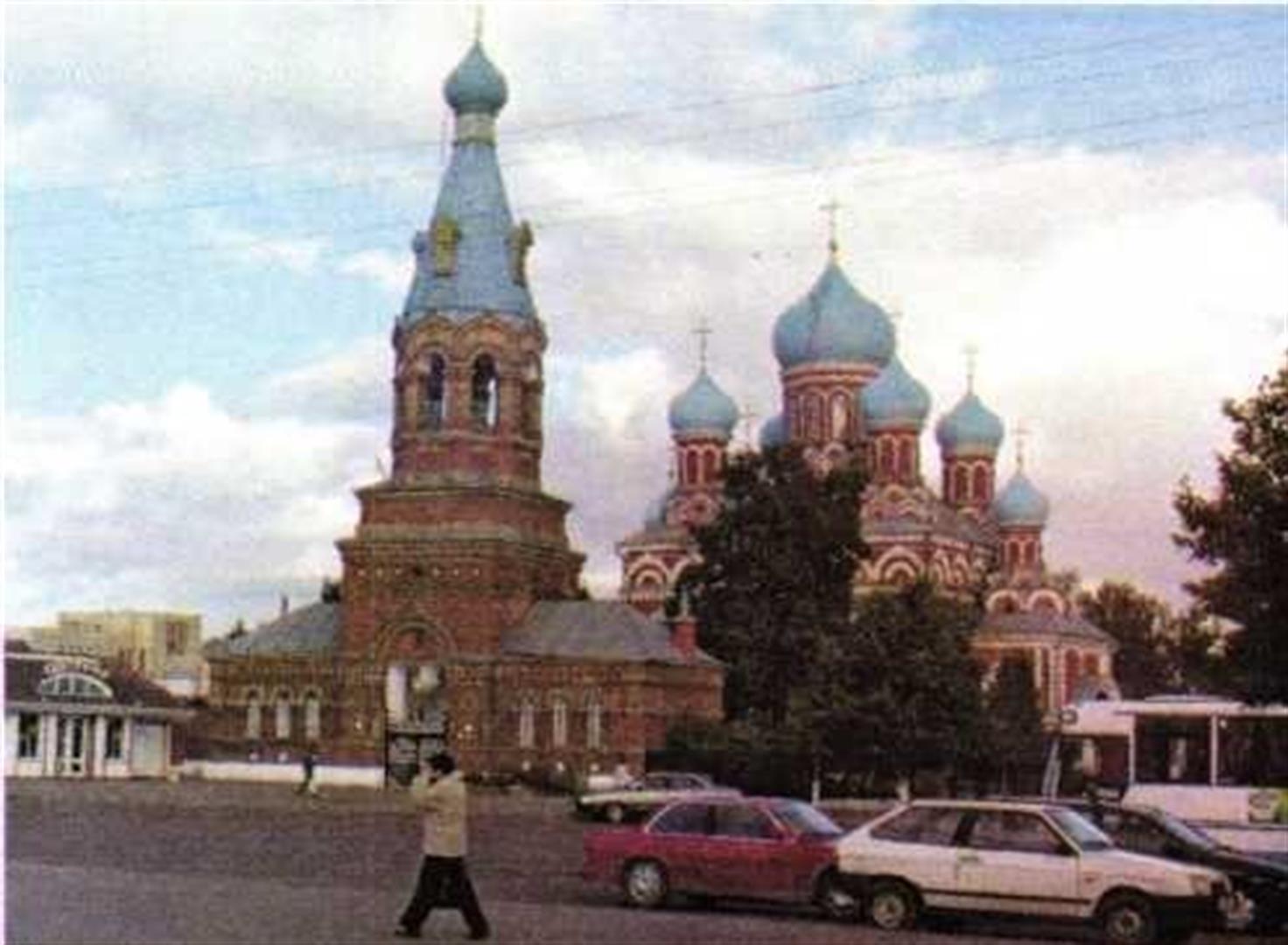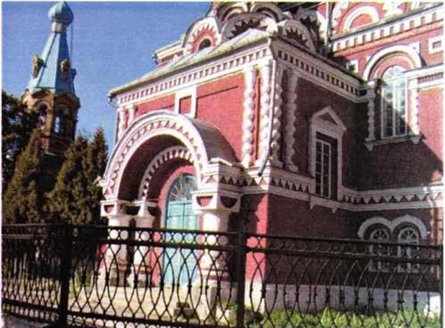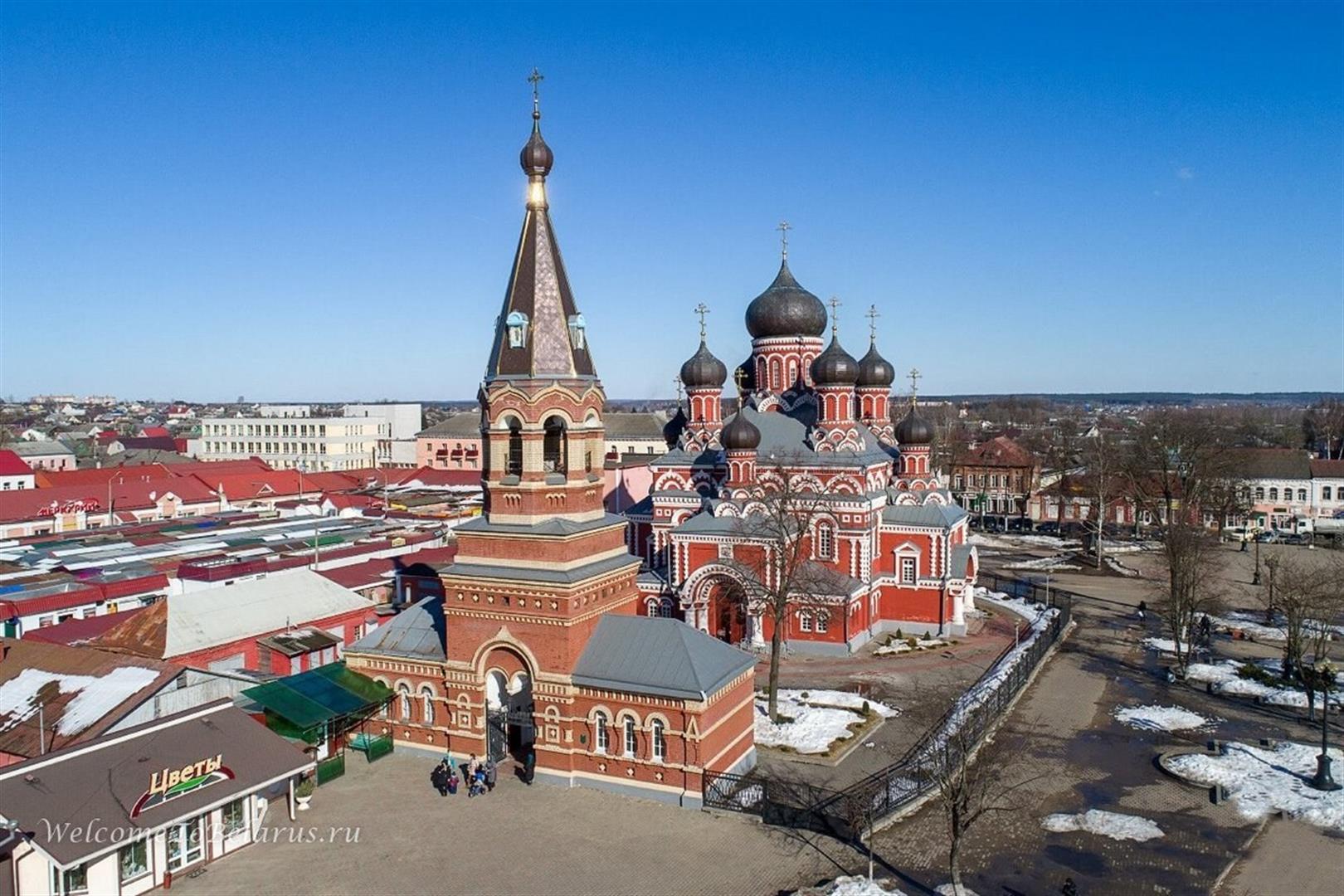 Перад саборам размешчана ярусная шатровая званіца з цыбулепадобнай макаўкай у завяршэнні, пабудаваная ў 1907 г. з цэглы паводле праекта архітэктара В.Струева. У першым ярусе званіцы ўваходная брама.
