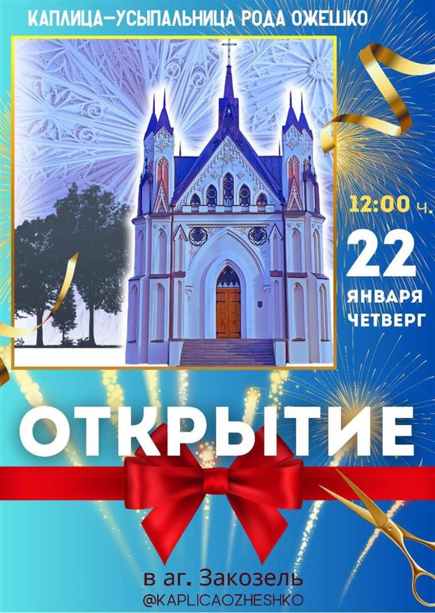 Адкрыццё капліцы-пахавальні роду Ажэшкаў у в.Закозель адбудзецца 22 студзеня 2026 г. у 12.00