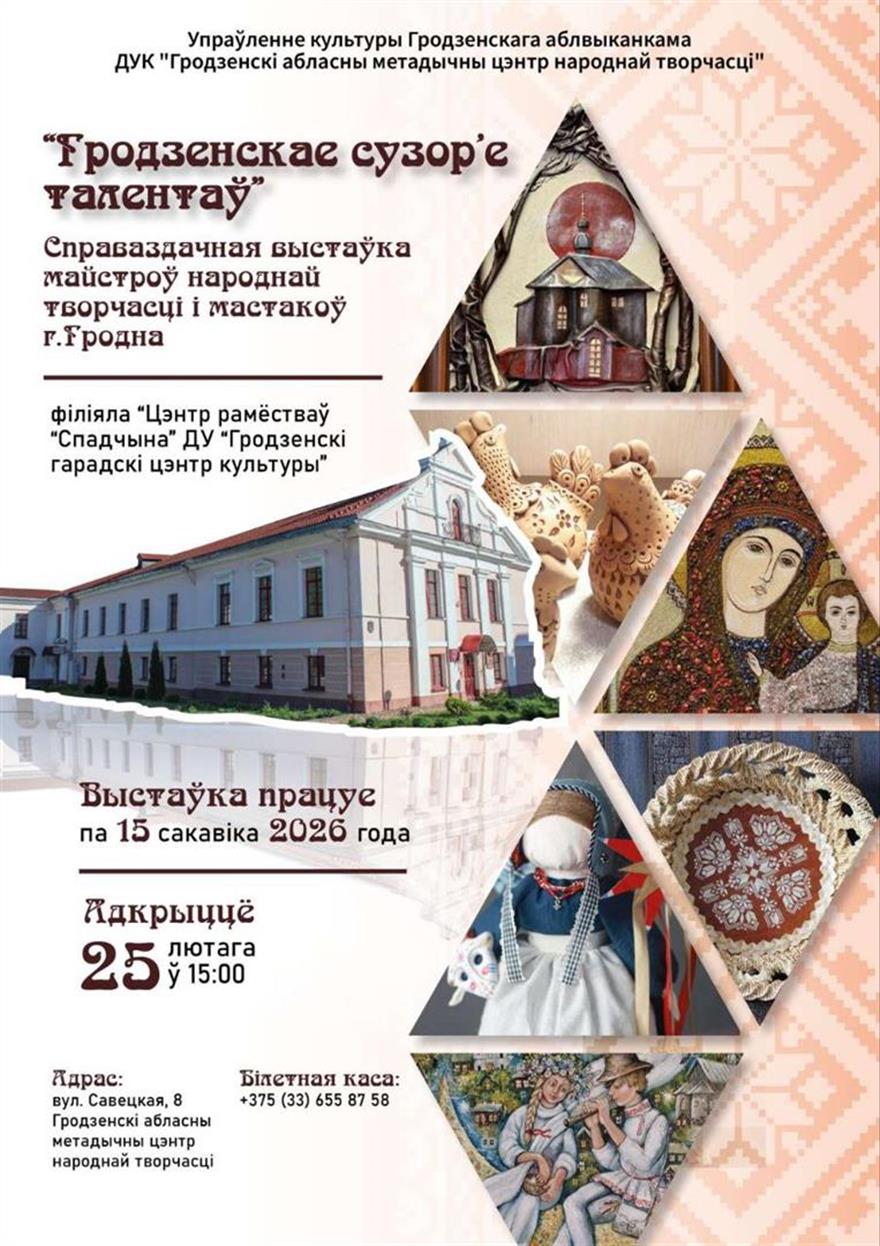 У Гродзенскім абласным метадычным цэнтры народнай творчасці адбылося адкрыццё выстаўкі “Гродзенскае сузор’е талентаў”. Азнаёміцца з работамі можна да 15 сакавіка 2026 г.