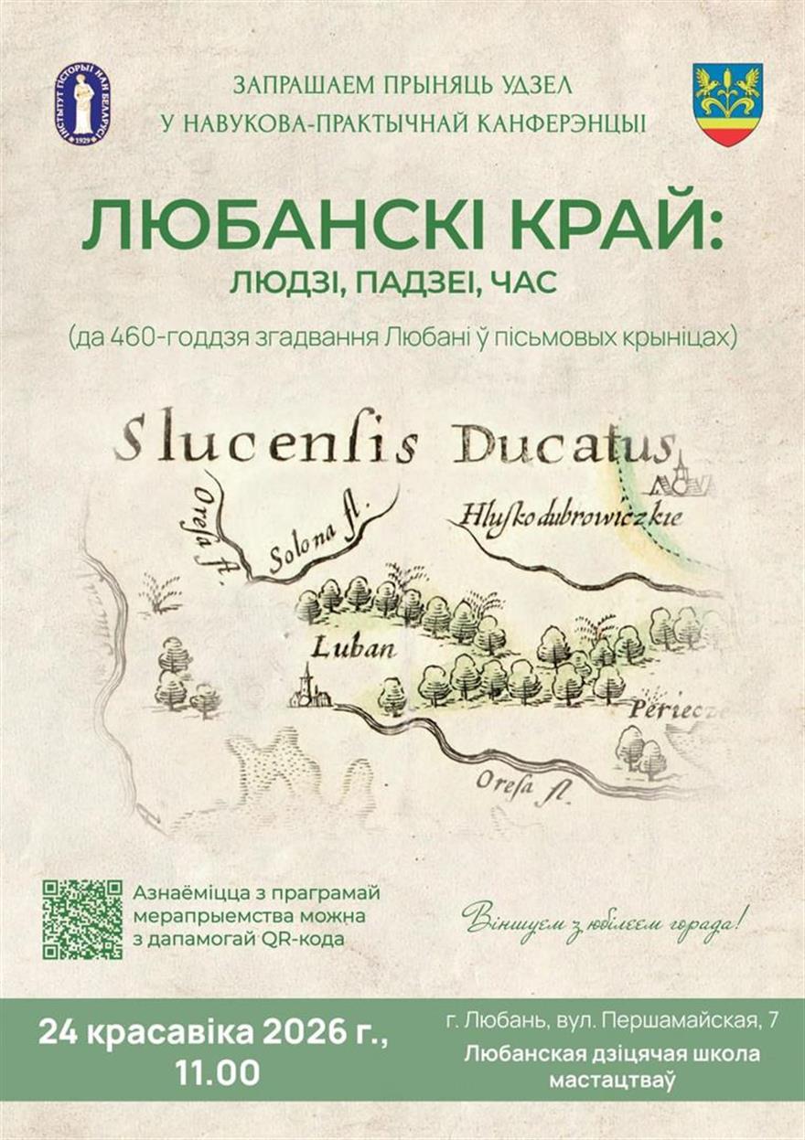 24 красавіка 2026 г. у Любані адбудзецца Навукова-практычная канферэнцыя «Любанскі край: людзі, падзеі, час (да 460-годдзя згадвання Любані ў пісьмовых крыніцах».