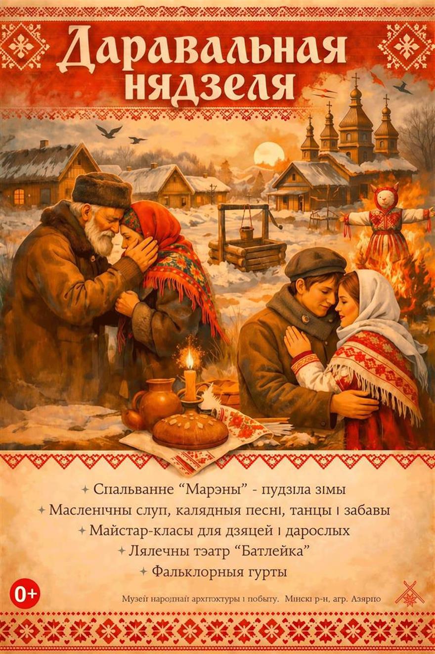 22 лютага 2026 года з 13.00 да 15.30 Беларускі дзяржаўны музей народнай архітэктуры і побыту запрашае на свята «Даравальная нядзеля»